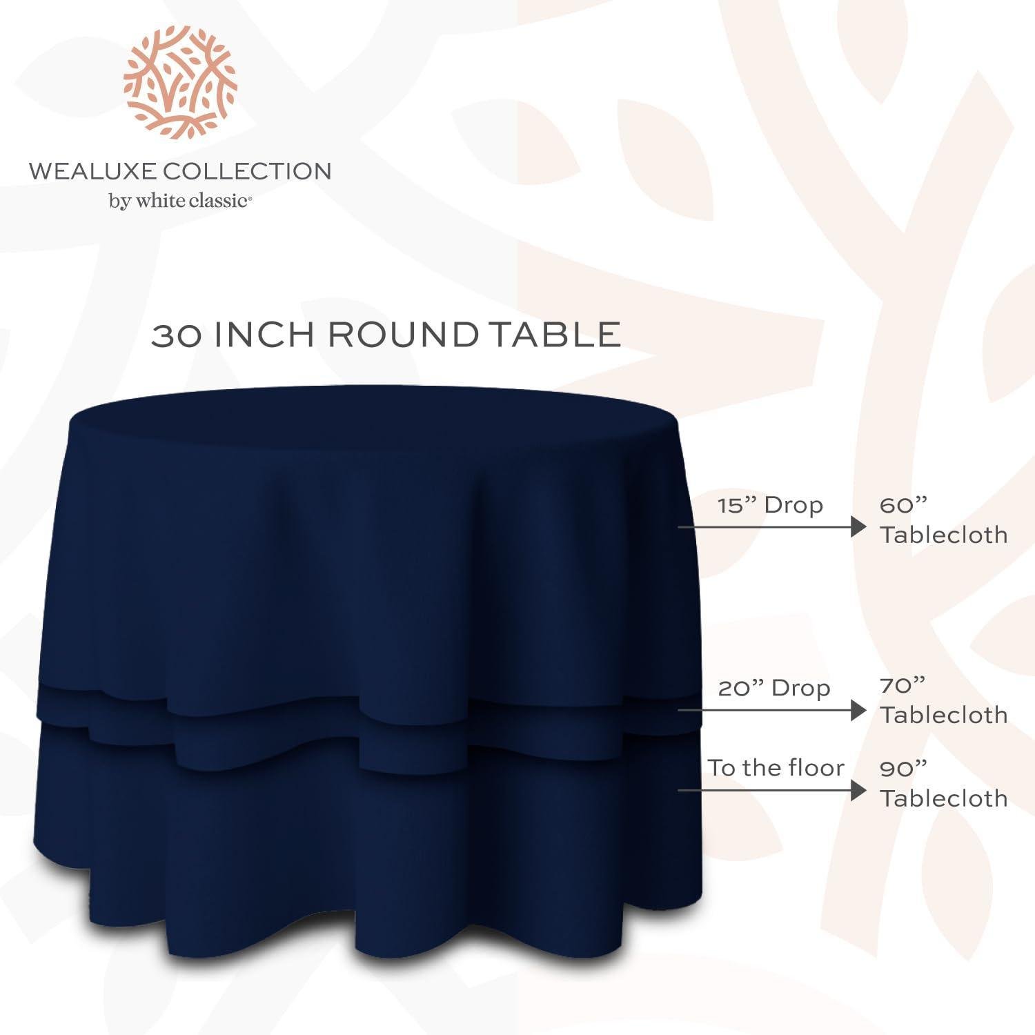 5.convenient 2-pack: with this purchase, you'll receive not just one, but two navy round tablecloths! this makes it easy to have a spare on hand in case of spills or stains, or to mix and match with other colors and patterns to create a truly unique dining experience. plus, the 2-pack makes these tablecloths an even better value for your money.