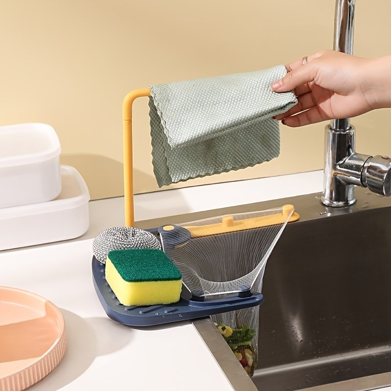2pcs Kitchen Sink Drain Rack With Filter Multi-Functional Triangular Sink Rack Disposable Kitchen Waste Filter
