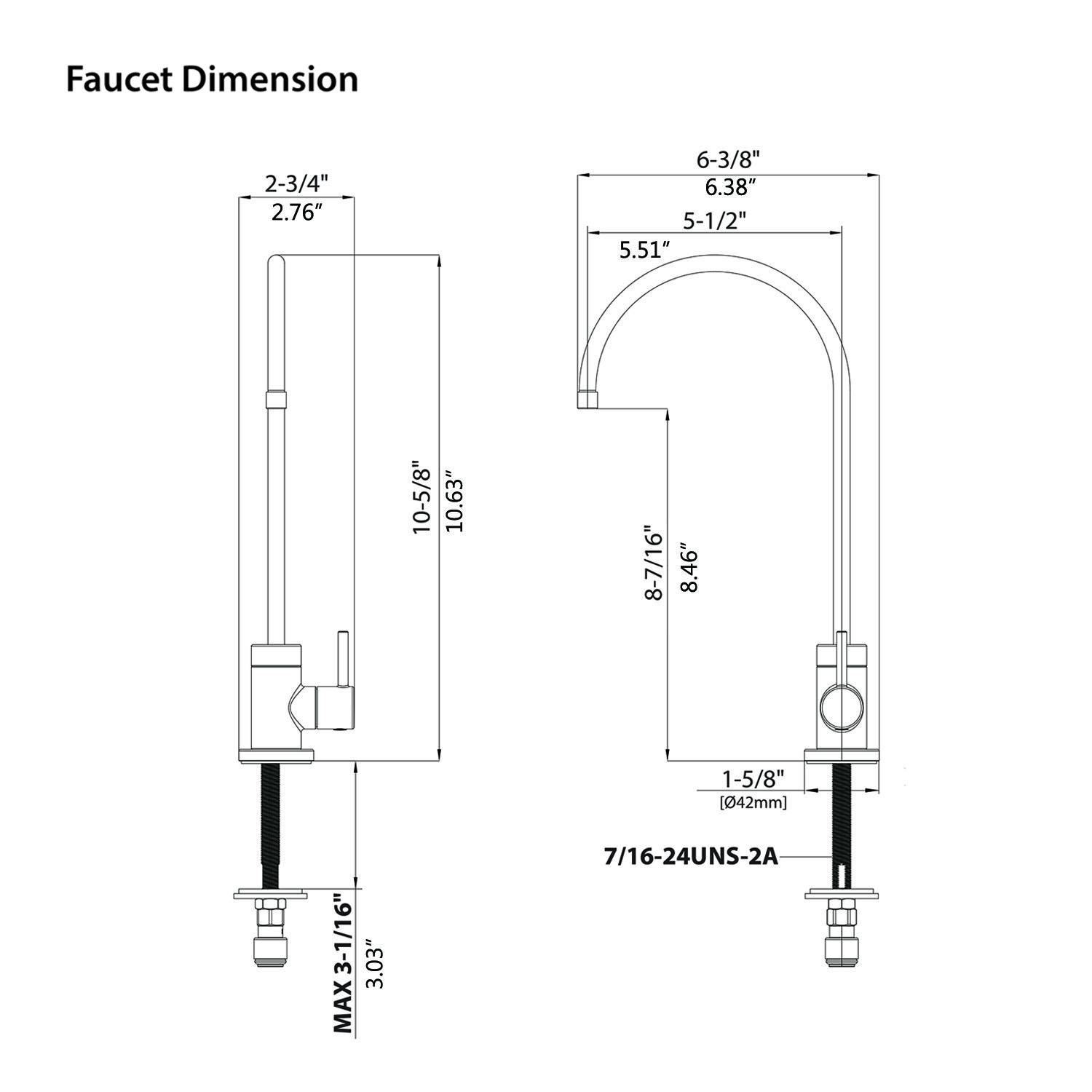 Description:Stainless Steel water drinking faucet was designed with a pithy appearance and simple lines to combine practicality with an elegant style so that it can be suitable for any kitchen arrangement.This single handle vessel sink faucet features a cylindrical shaped anatomy with sleek surfaces and curves. Design with Premium metal construction of faucet body and handles ensures reliability. Finishes resist corrosion and tarnishing through everyday use. The inner wall is smooth and no rust occurred, no dirt, no secondary pollution. high-grade ceramic disc cartridge with excellent seal, no leakage, no drip.90 Degree Single lever handle for quick and easy water control. Single stream mode water flow, 90 degree all the free rotation you want. High-arch spout design with 360-degree rotation offers more room for a variety of sink activities in kitchen.