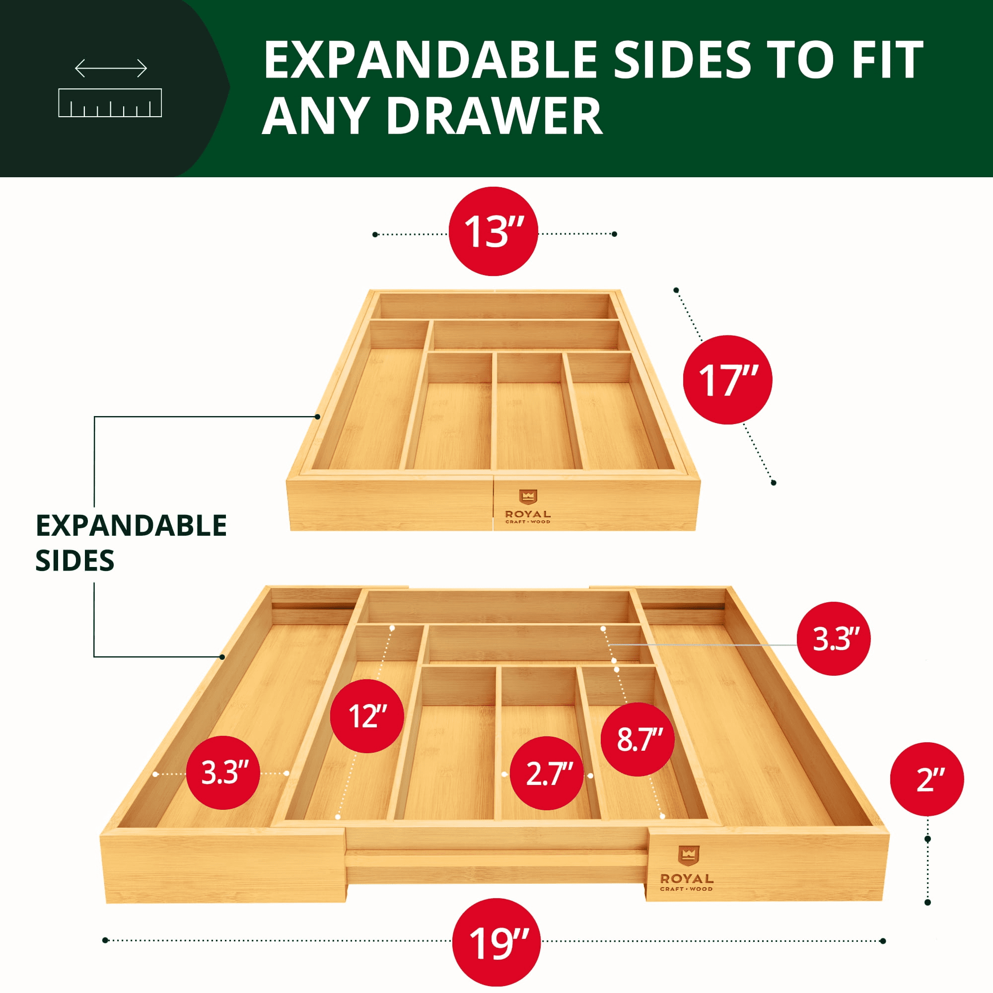 Keep all your kitchen utensils and silverware in order and declutter your drawers in a moment with organic bamboo drawer organizer!