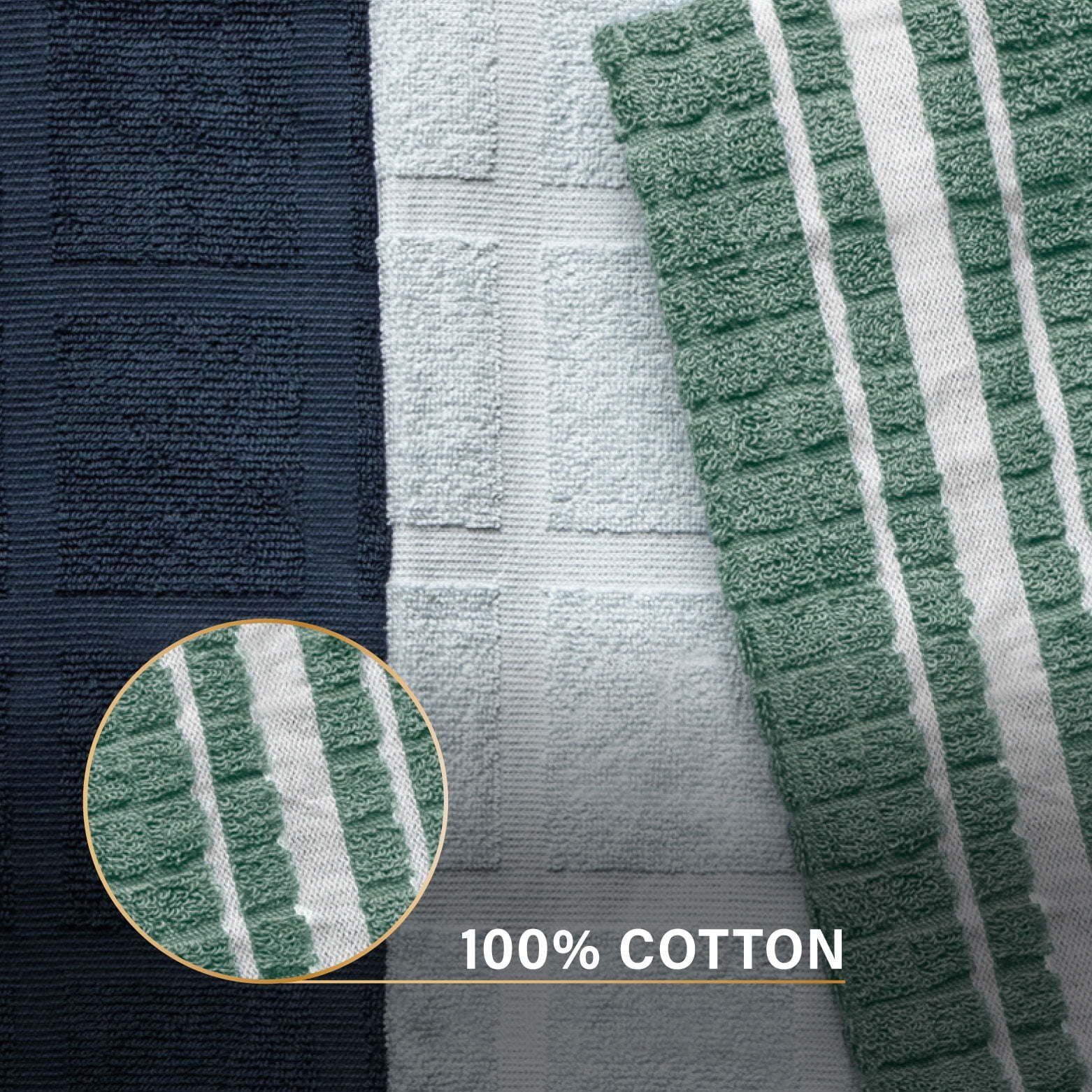 Thyme & Table 5-Piece Set Kitchen Towels, Navy, White, Green
